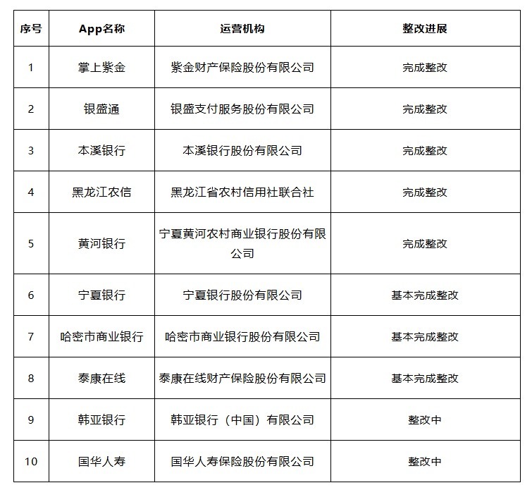 其中,由宁夏银行股份有限公司运营的APP宁夏银行基本完成整改。