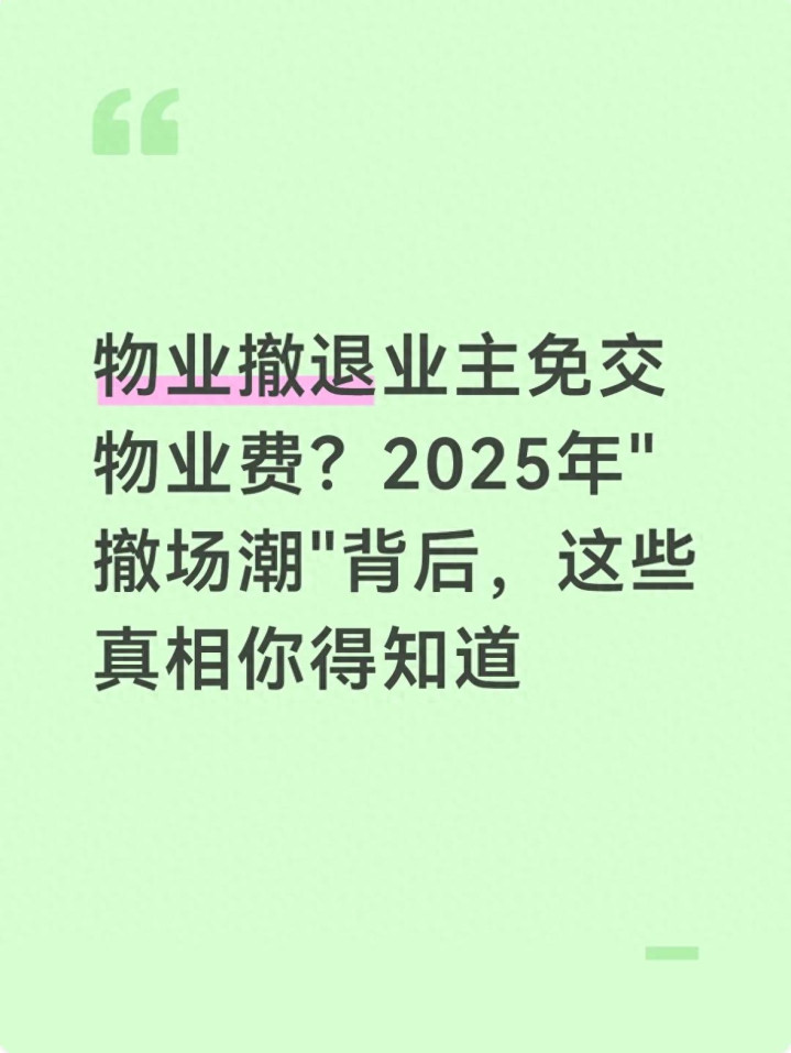 信捷策略 物业撤退业主免交物业费? 2025年"撤场潮"背后, 这些真相你得知道