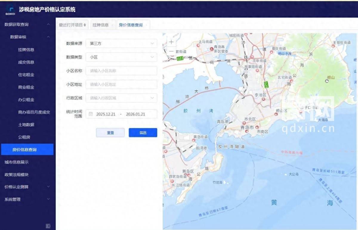 涉税房地产价格认定系统界面。(来源:青岛市发展和改革委员会)